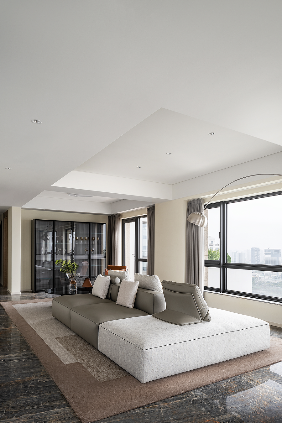 The modular RUBIX sofa in the living room offers remarkable versatility and can easily adapt to various living situations. Whether it's for everyday leisure activities or family gatherings, it serves as the ideal spot for residents to unwind and connect, feeling as if they're embraced by a vast ocean.