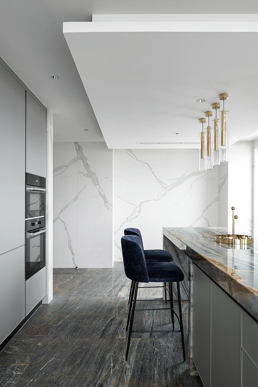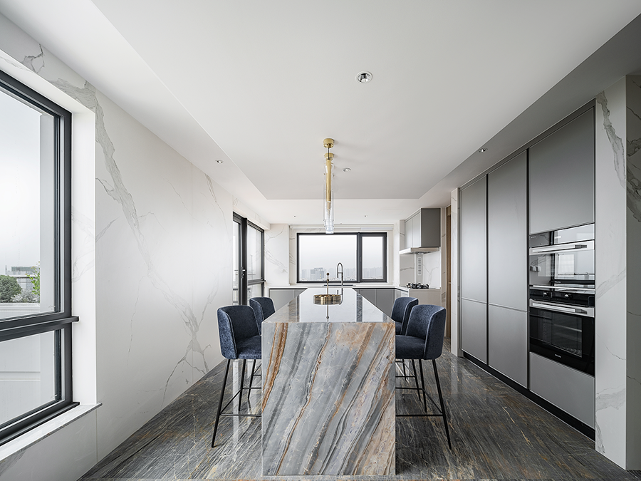 The island area embodies elegance with its understated design and stunning decor. It can also versatilely serve as a breakfast nook and an evening retreat where you can unwind and let go of the day's stresses with a glass of wine.