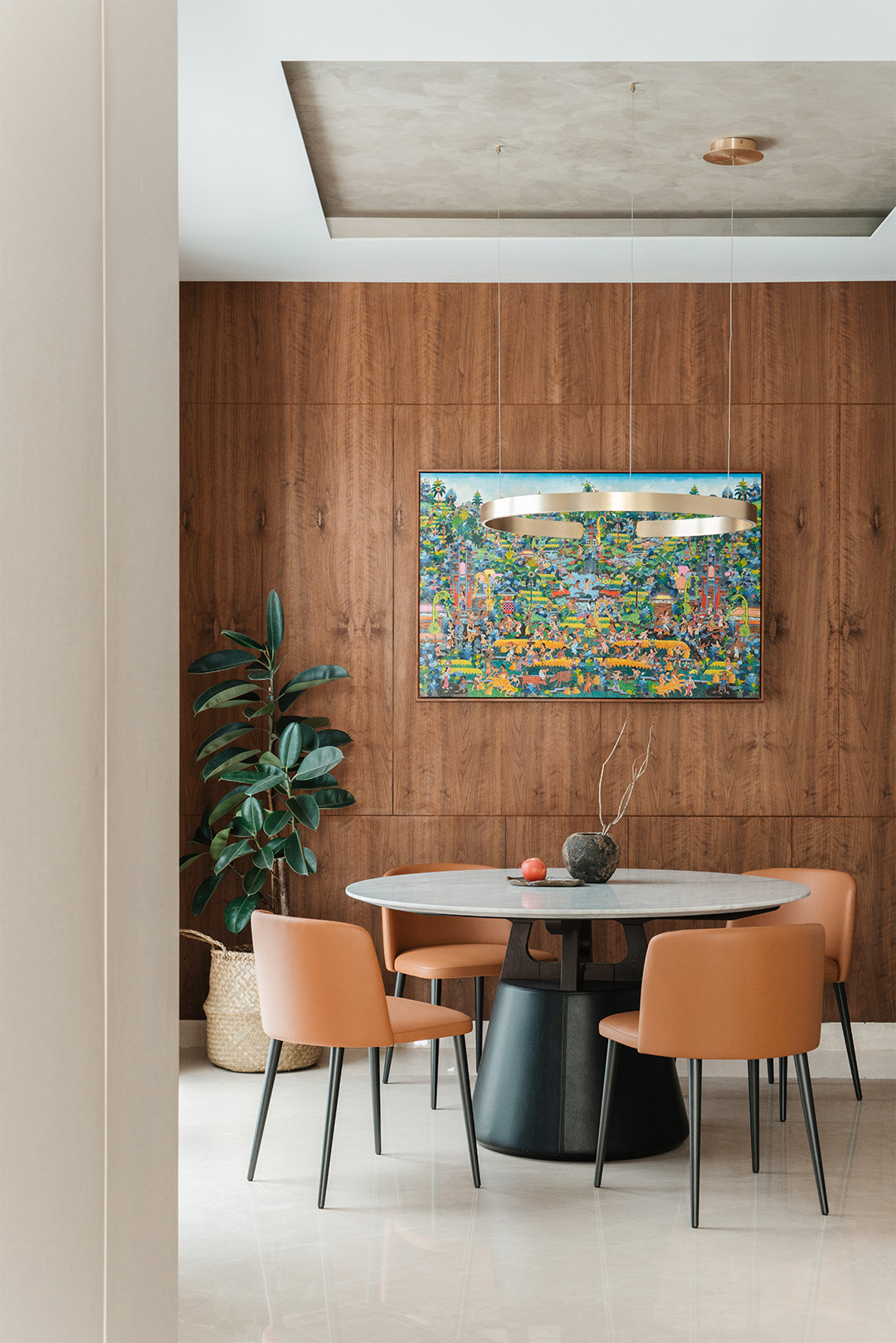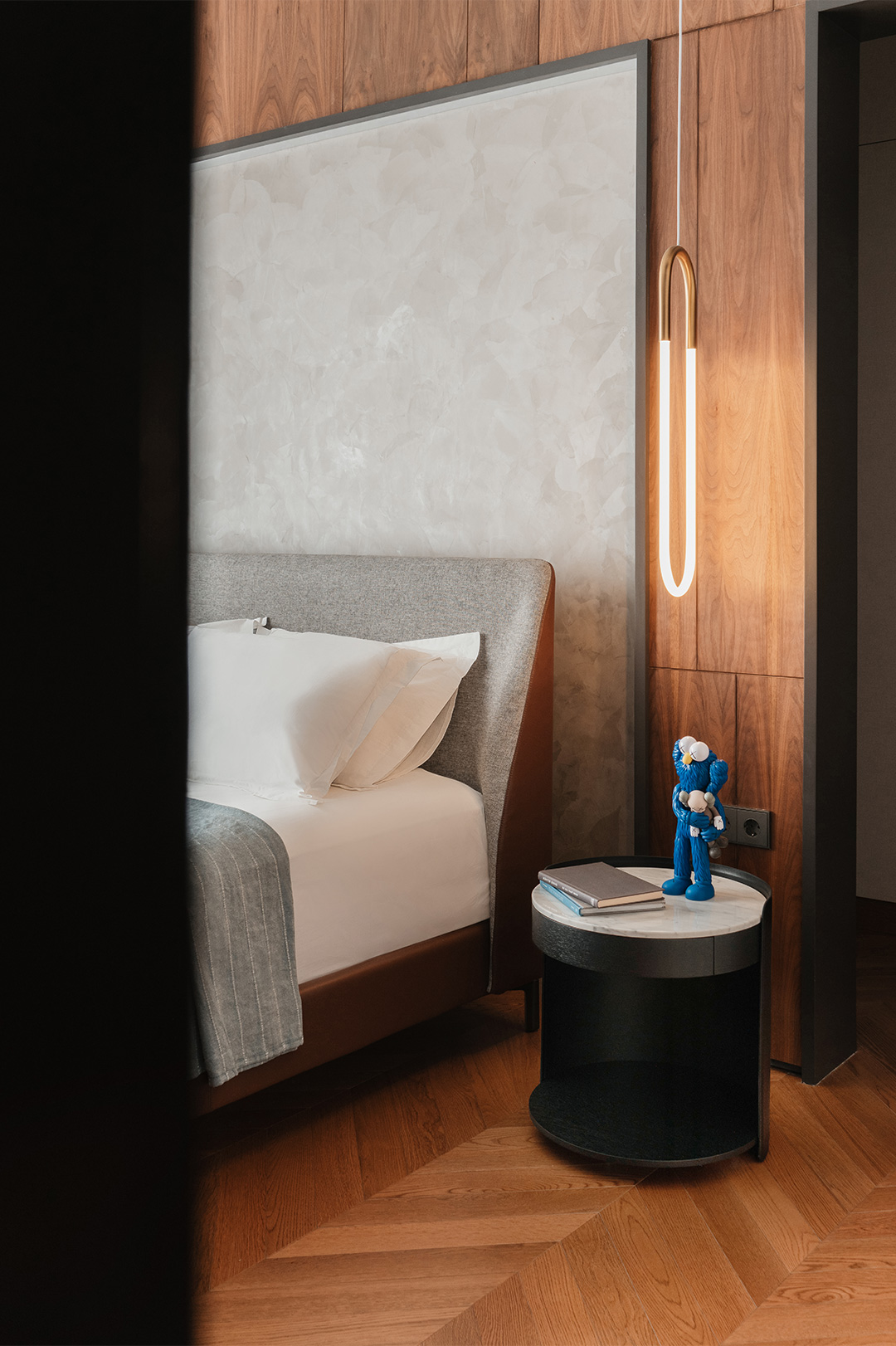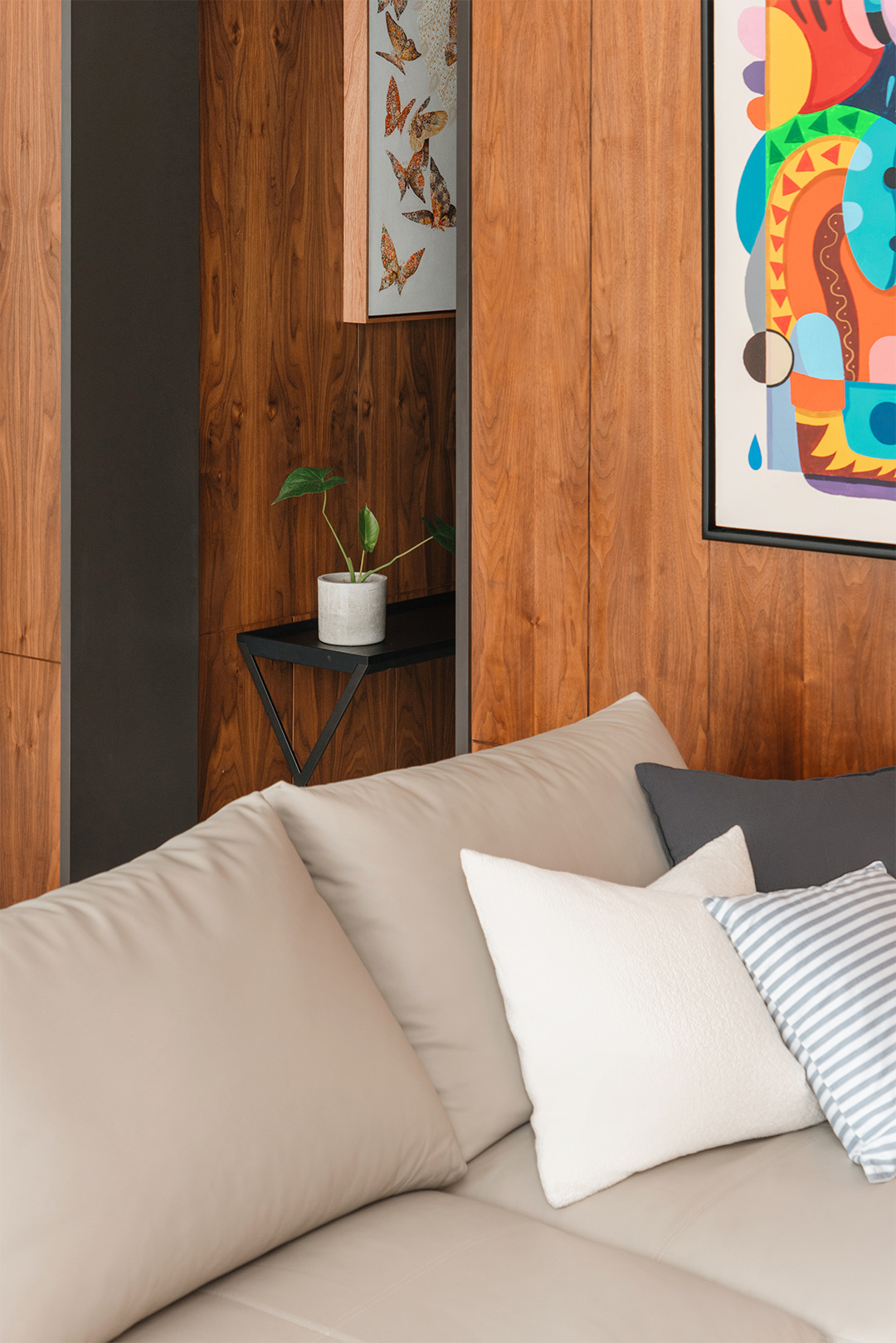 With such imaginative design, mild and moderate furniture is needed for balance. CAMERICH furniture is elegantly arranged throughout the space: the soft EASYTIME sofa, the gentle VAST chair, the clean-lined MATRIX cabinet, the comfortable MELODY bed, and the streamlined ECHO chair... Their quiet inclusiveness harmoniously coexists with the traditional South Asian wood elements, trendy dolls, and paintings of varied styles, forming a magical yet stable fusion.