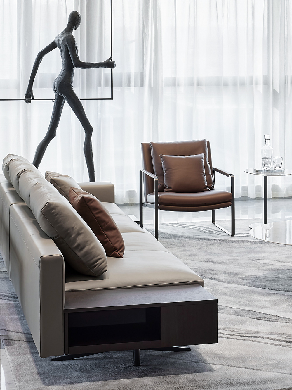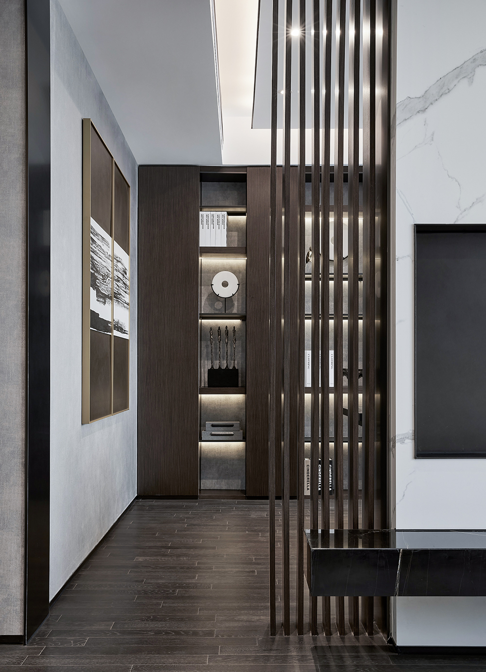 设计师在充分了解业主生活及精神需求的基础上,对空间做出了调整与规划。通过融入诗意宅形与文化,借由居者与空间的关系,构建出回归内心舒适的美质生活空间。