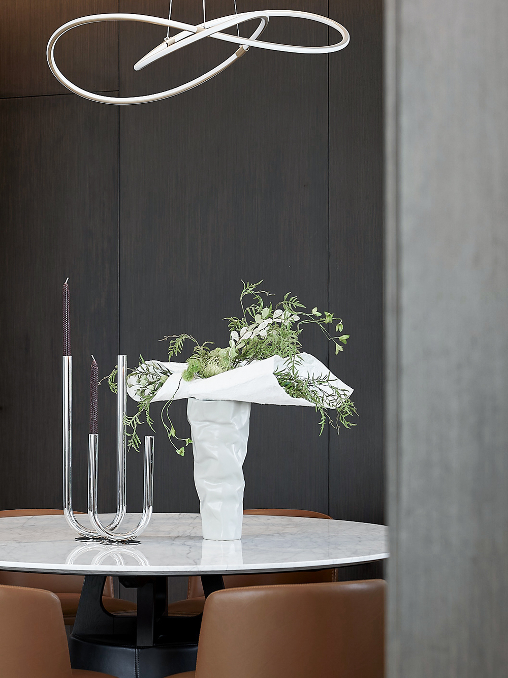 就餐也要注重仪式感,留白的墙面搭配现代风的装饰作品,点亮了餐厨空间的色彩,升华了空间格调。