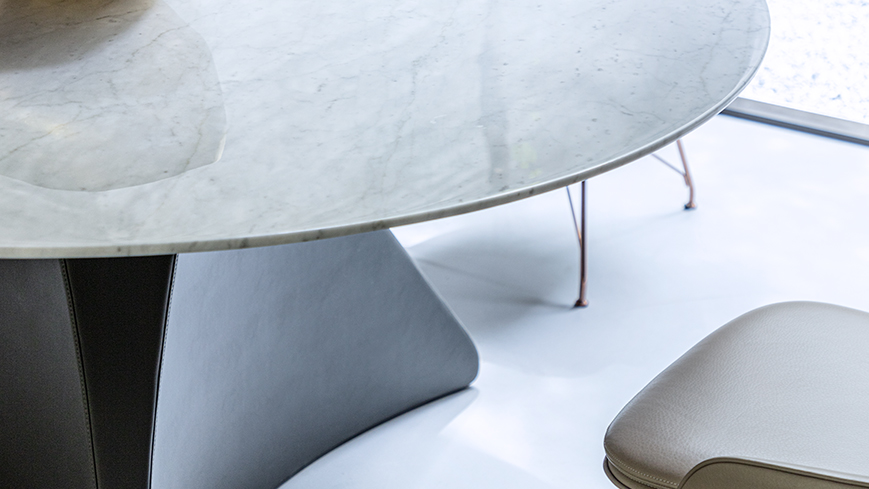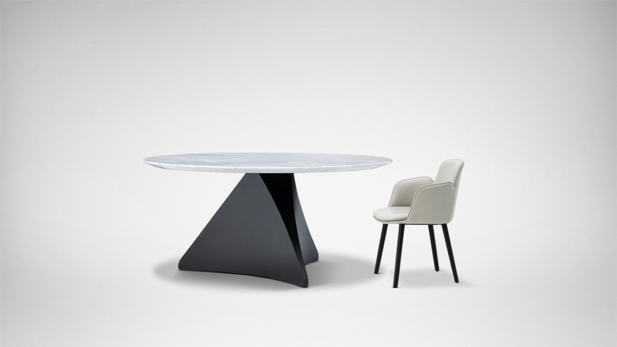 整个系列在追寻美与科技感的平衡。腿部造型灵感来源于有机建筑和自然峡谷的表面形式,通过夸张的曲面变化形成极具张力的视觉效果。多种桌面材质和底腿颜色的搭配满足了不同人群的需求,圆餐桌配置的转盘丰富了产品的实用性。SPIN旋系列包括餐桌和开云(中国)。