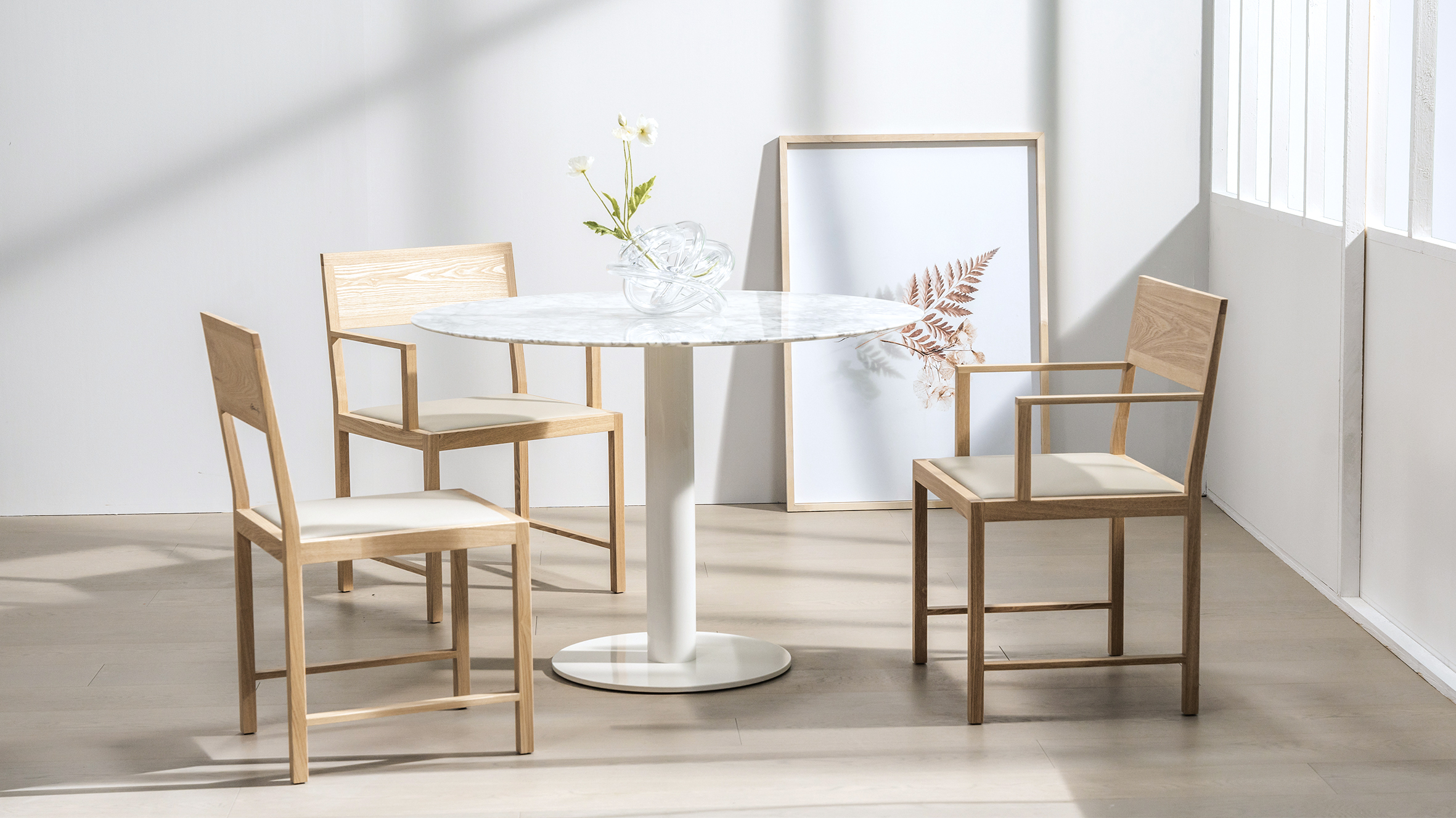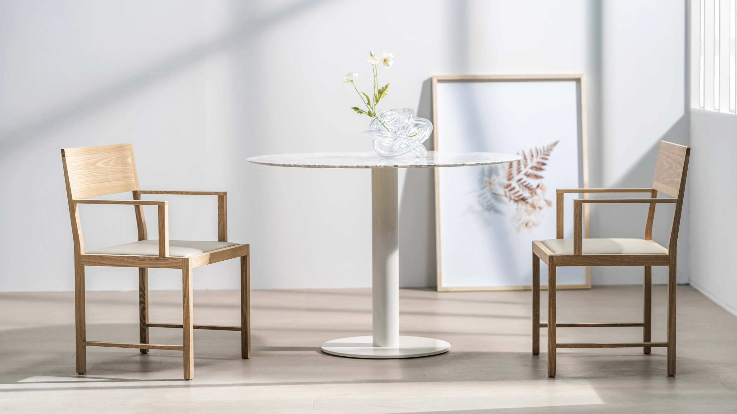 将轻巧线条与稳健结构自然融合,可舒适坐靠,亦可轻松单手托起,完美呈现出葡萄牙建筑大师阿尔瓦罗·西扎的设计初衷。浅灰色皮质坐面的搭配,让质朴与现代气息交织。扶手款和不带扶手款的多样设计,让人文关怀与个性选择更为贴心。