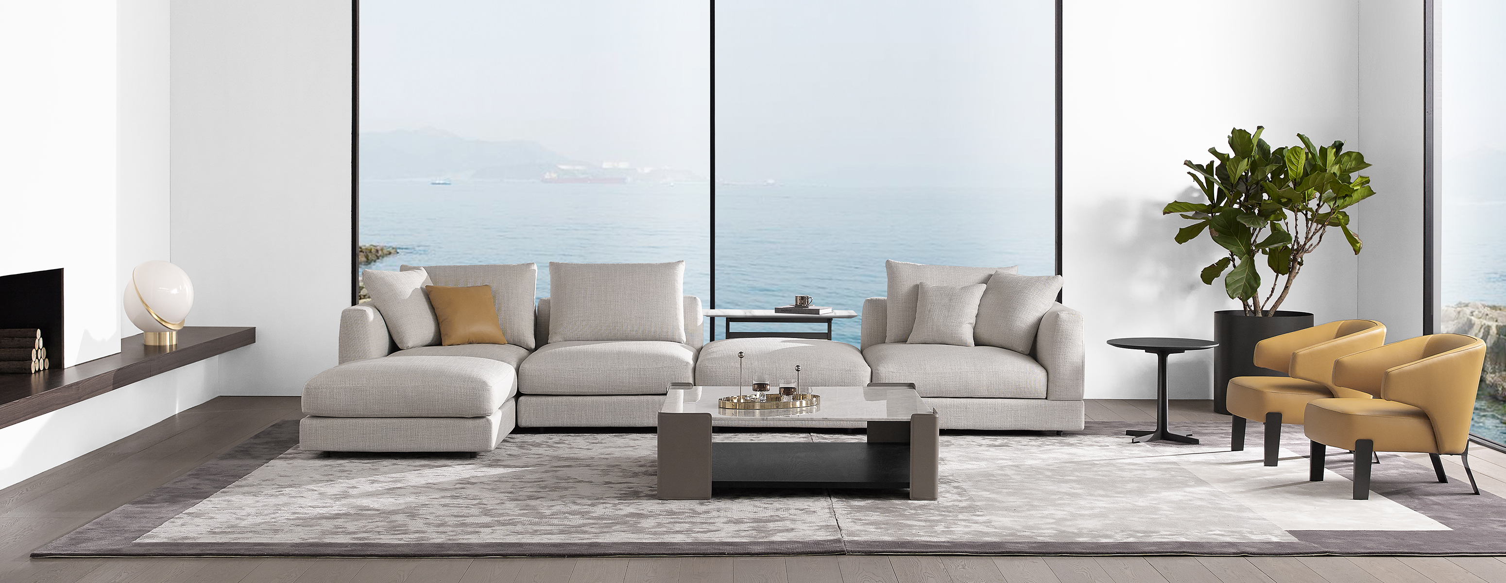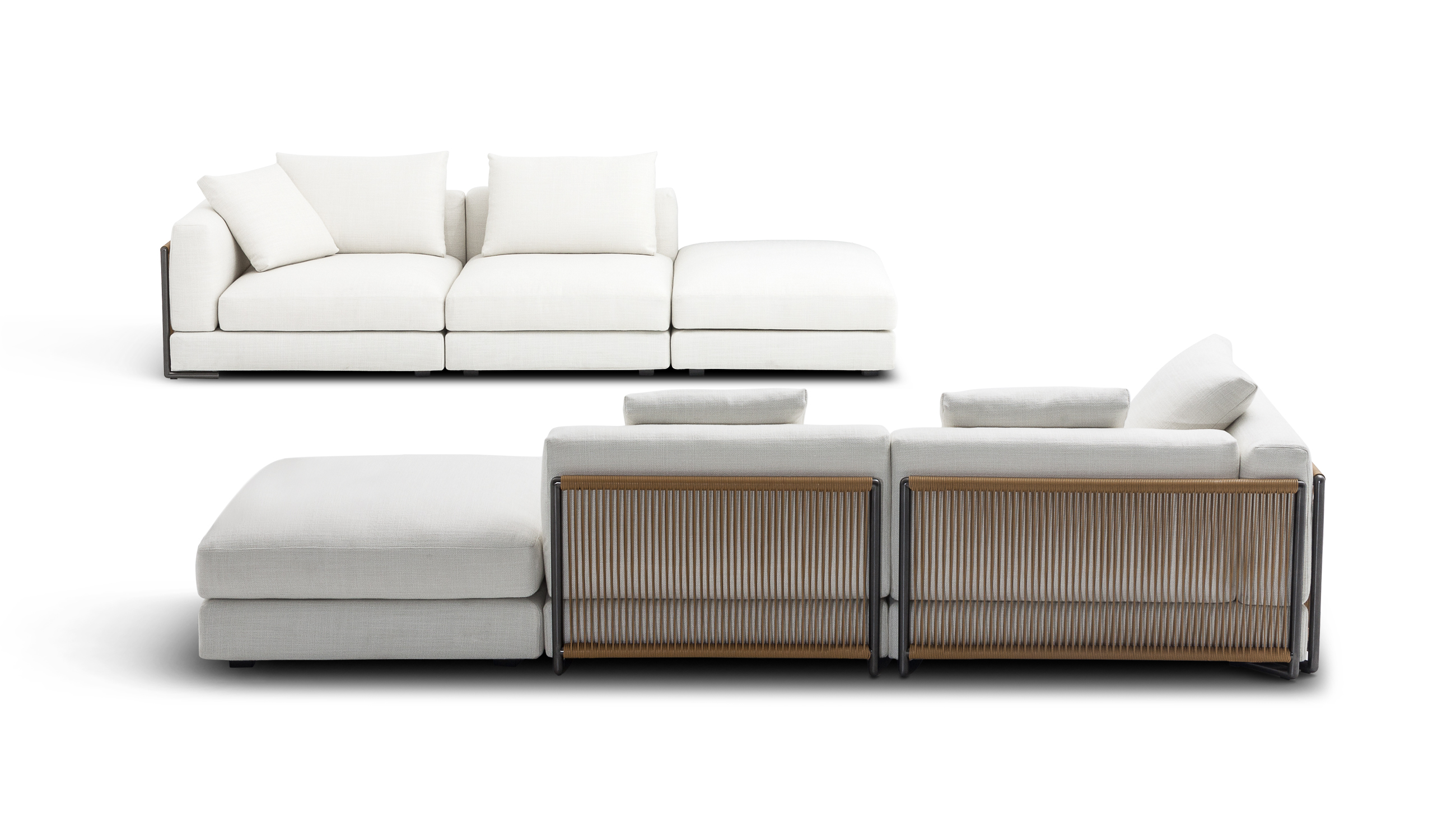 真皮编织的设计,弱化传统开云官方注册边框的生硬质感。多种模块自由组合,坐感柔软,无拘无束,拉近身心与自然的距离。